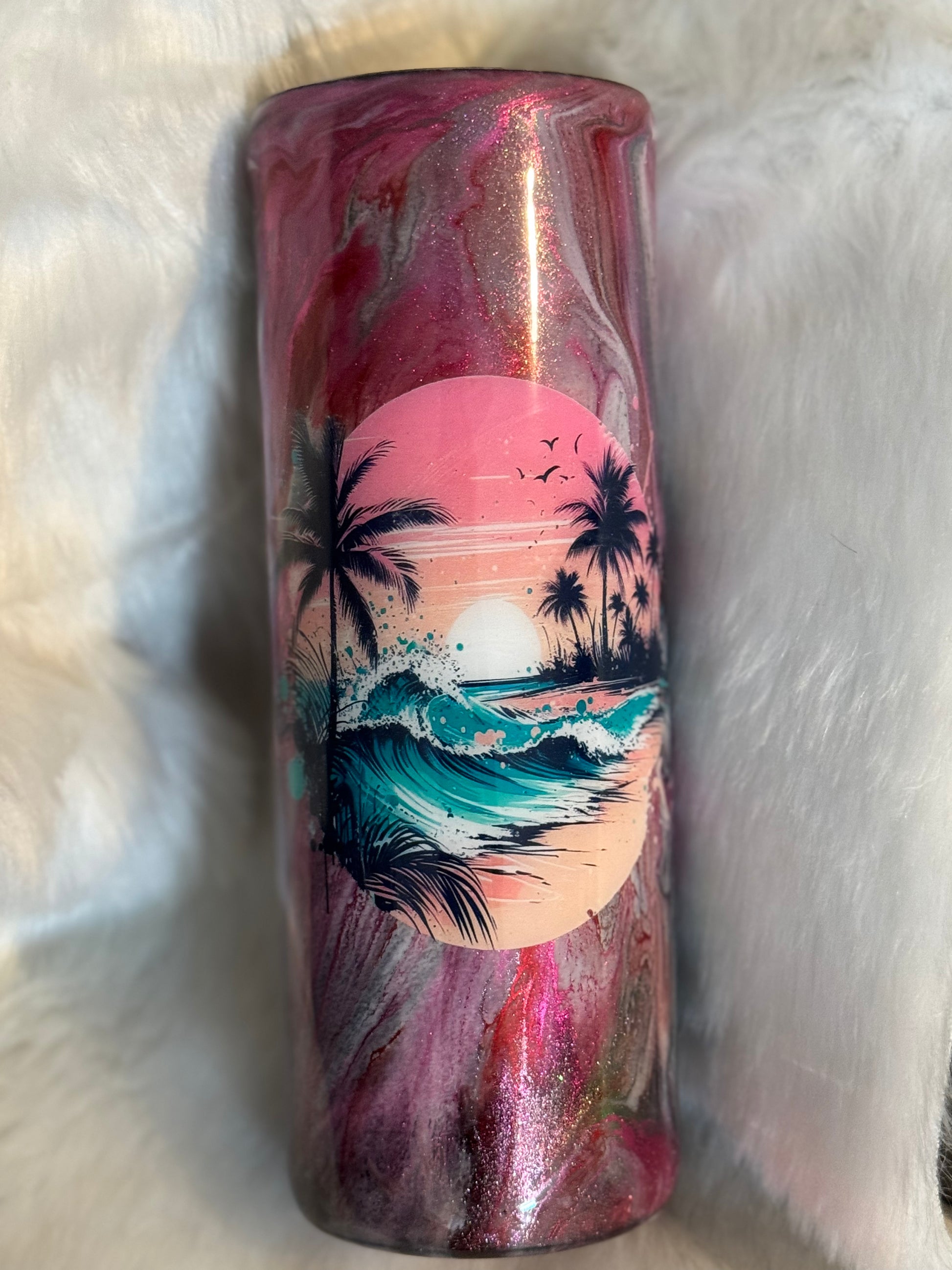 20 oz Tumbler with handle available for the technique and colors of your choice including, alcohol ink swirls, vinyl designs, woodgrain, and anything that comes to mind. Tumbler is only sold customized (not by itself). Straw is included.
